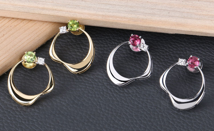 14kt yellow gold earrings with round-shaped peridot and diamonds